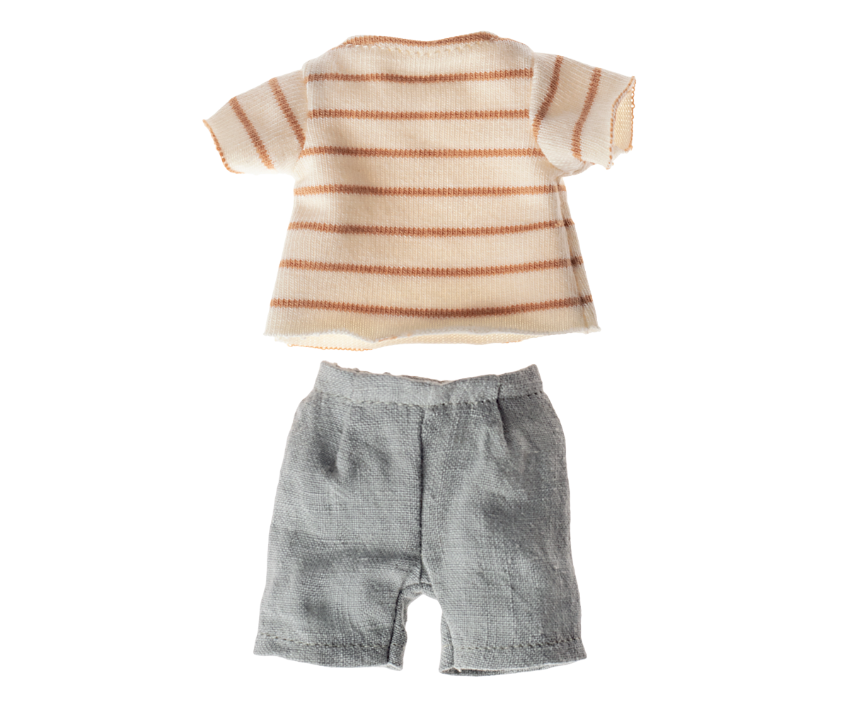 Rabbit size 1, Chocolate brown - Striped blouse and shorts