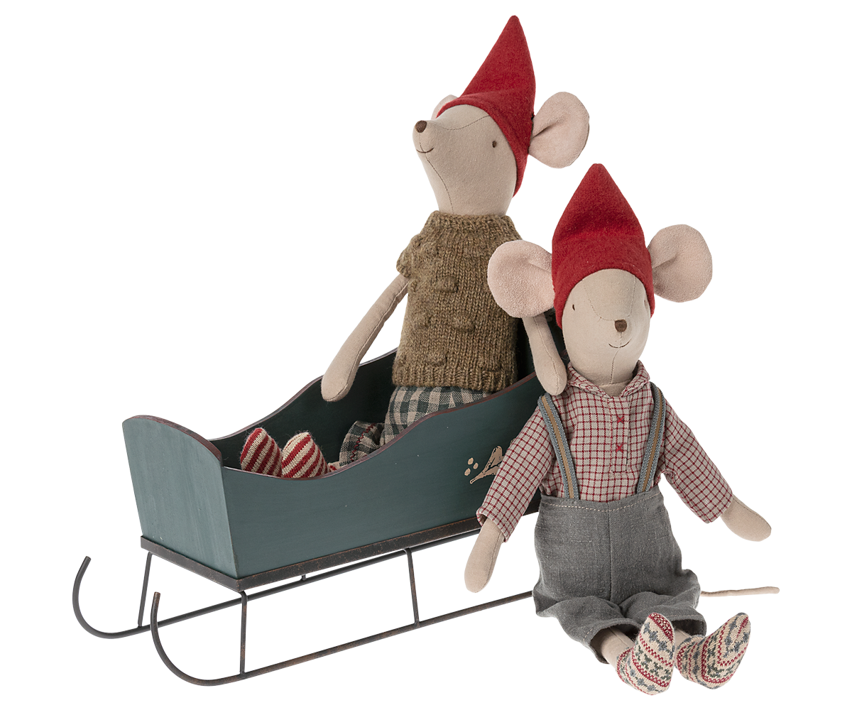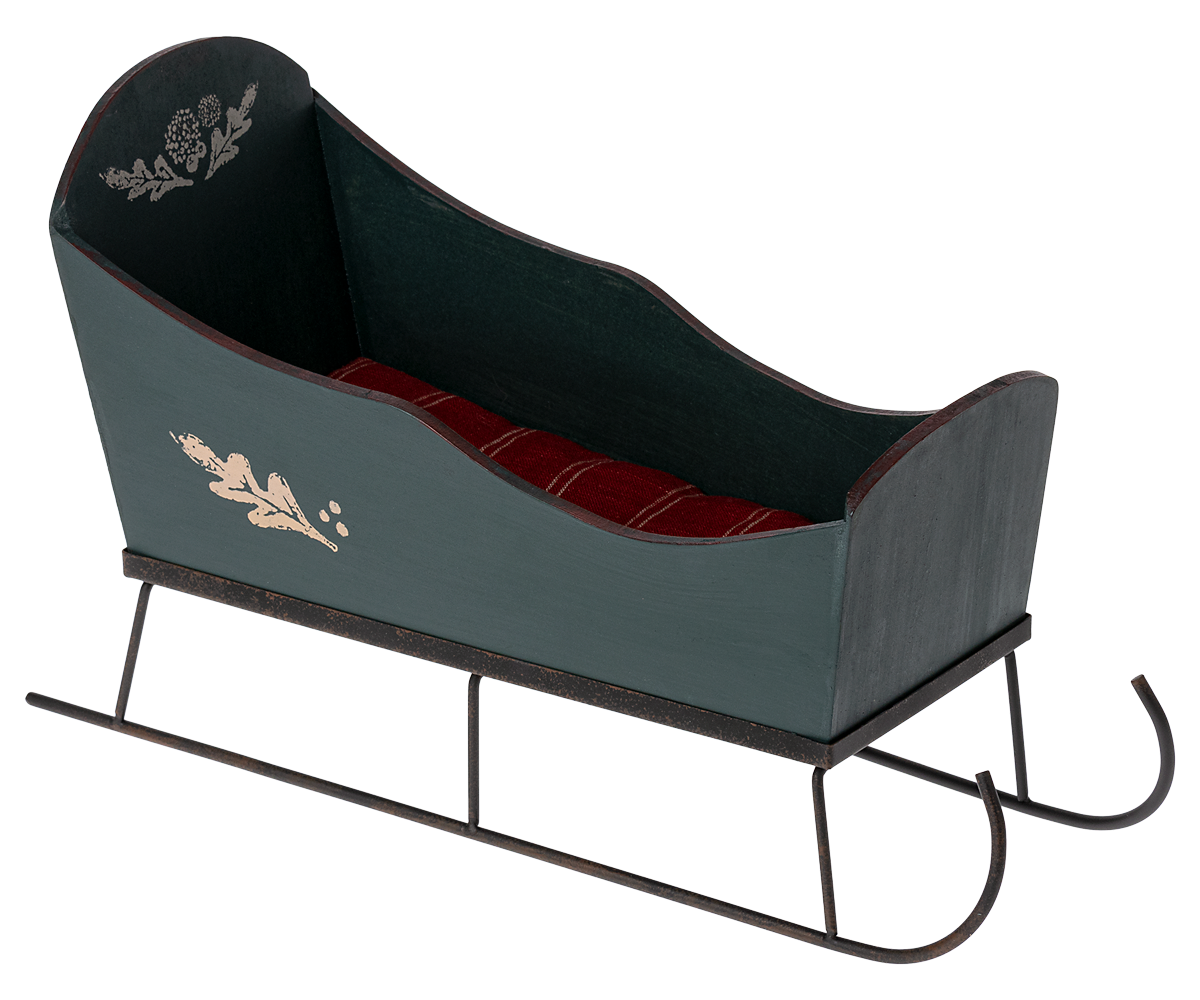A lovely sleigh with a soft mattress to keep the passengers warm and comfortable during the ride. This sleigh fits the medium mice perfectly or any other in similar size. It has beautiful hand-painted details - variation may occur.
